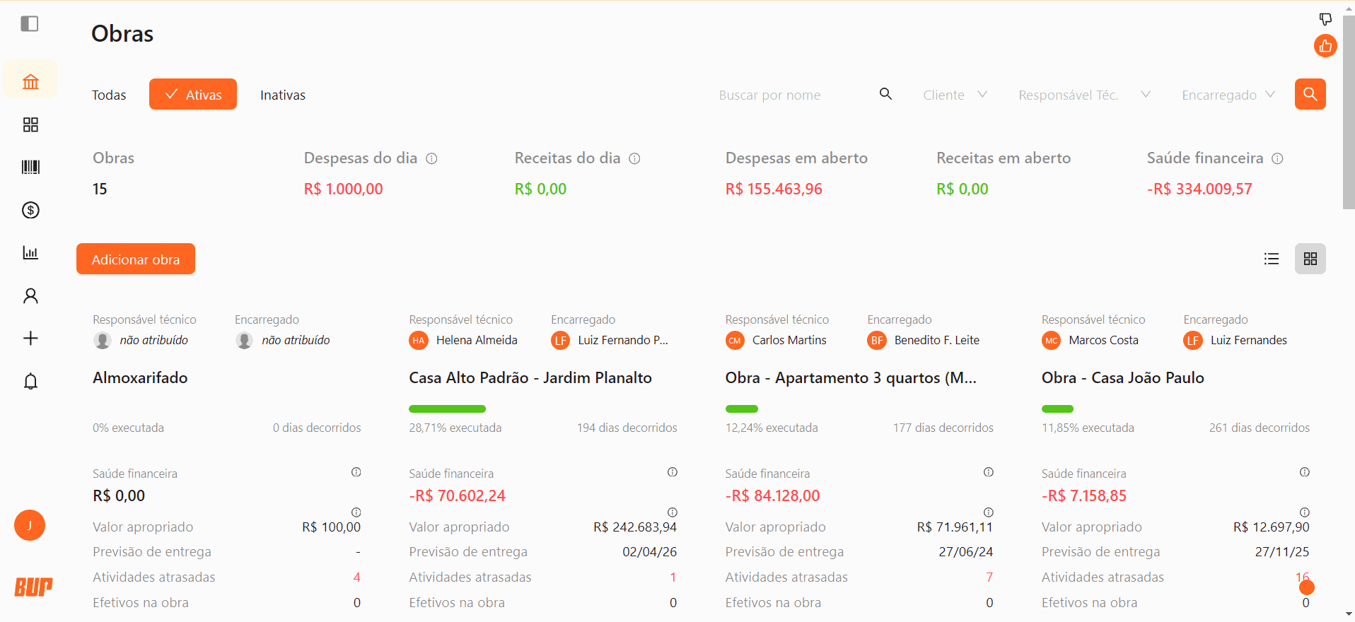 A obra precisa existir na plataforma — isto acontece quando um orçamento é aprovado e transformado em obra ou quando a obra é criada manualmente. Depois disso, é possível que o usuário com a permissão de Editar na aba de Usuários pode configurar as permissões do interessado pelo Painel.