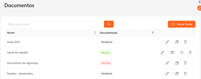 Clique em Nova Pasta para criar uma nova categoria e agrupar documentos relacionados.