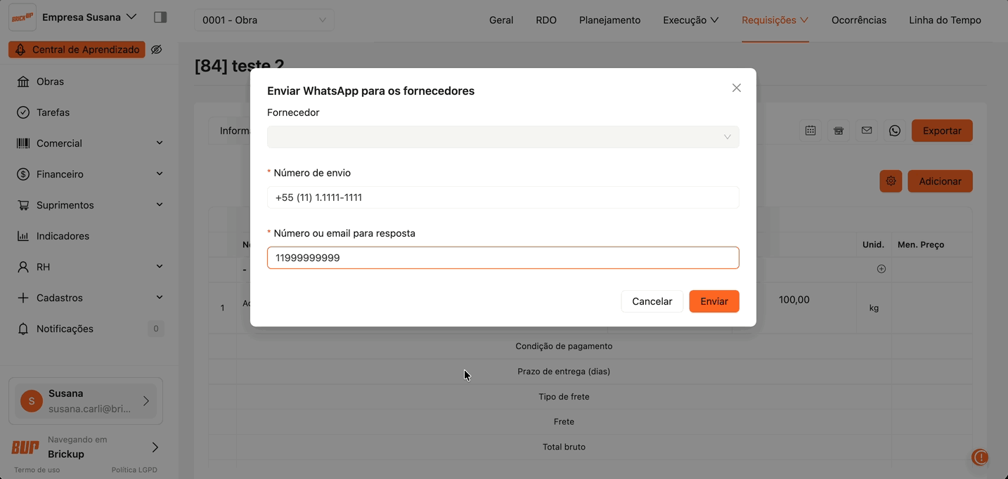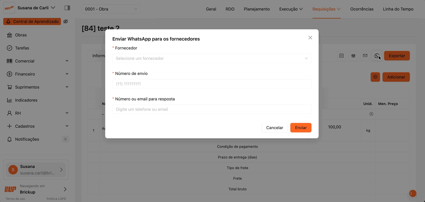 Envio de cotação para fornecedores pelo WhatsApp