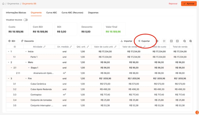 Ao criar um orçamento, você pode exportá-lo em diferentes formatos, facilitando a análise, o compartilhamento e a apresentação da proposta ao cliente ou à equipe interna.