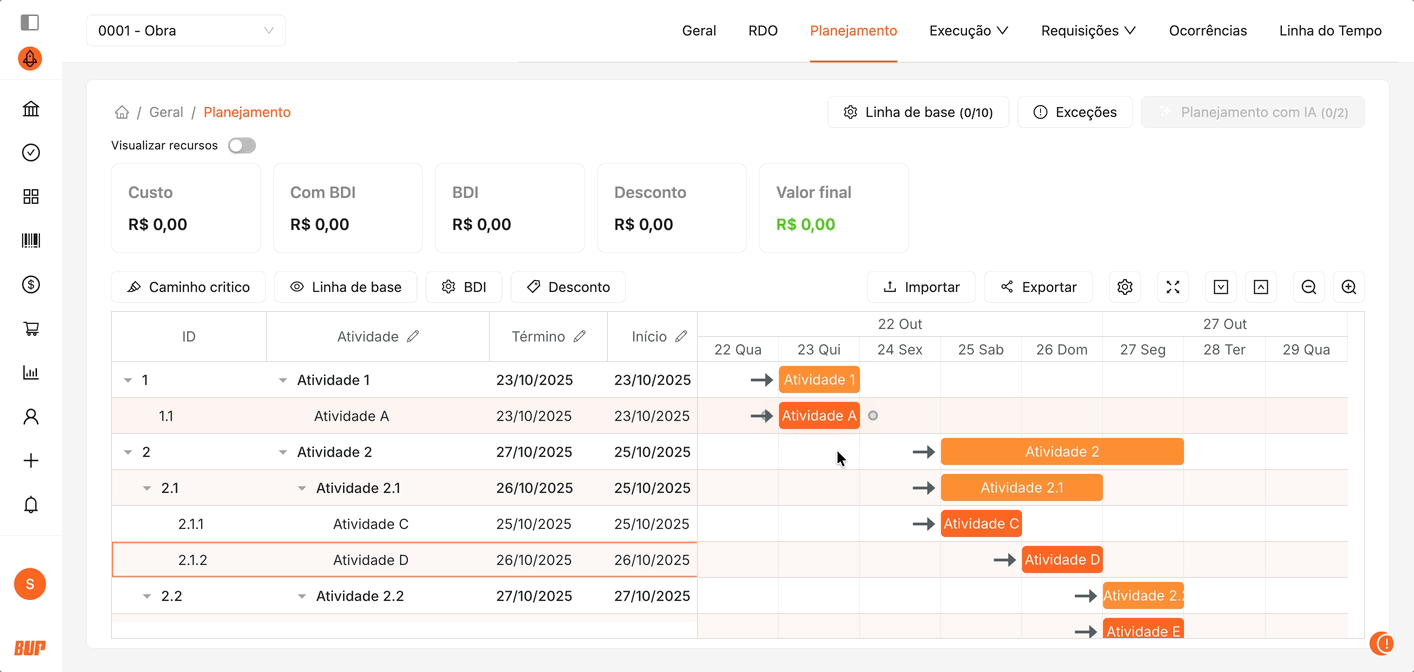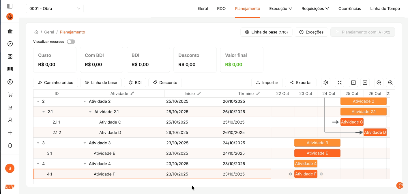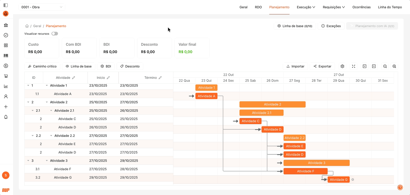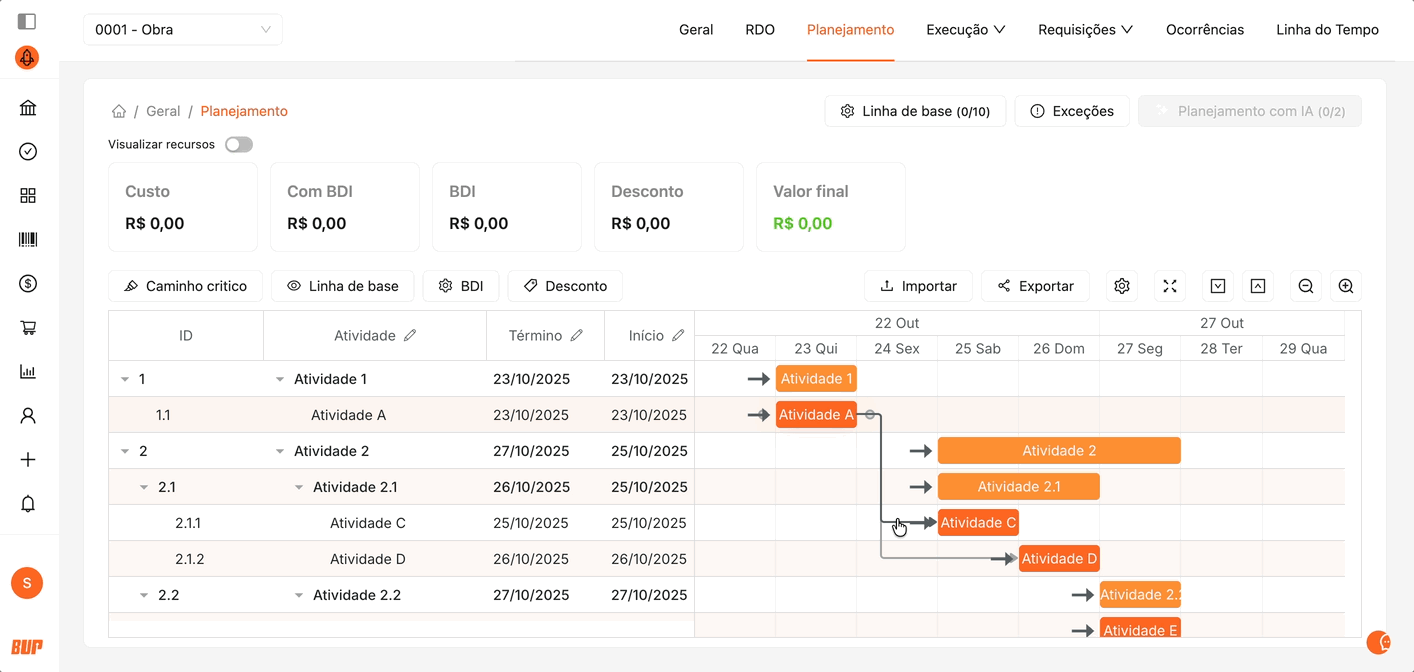 Organize, monitore e compare o cronograma da obra usando ferramentas essenciais de gestão.