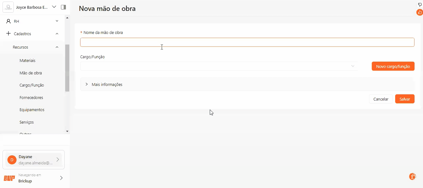 • Nome da Mão de Obra: Insira o nome do colaborador e, se desejar, o nome da empresa.