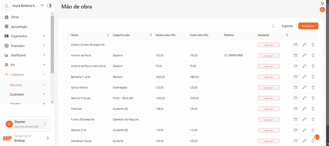 Gerencie o cadastro da sua equipe de forma eficiente e otimize o controle da execução na obra.