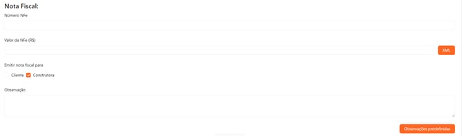 Emitir NF para: defina se a nota será emitida para a Construtora ou diretamente ao Cliente.