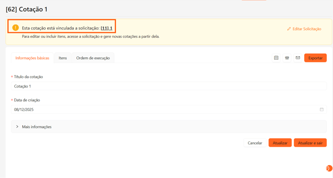 O ID das cotações segue a sequência geral das cotações da organização, não necessariamente iniciando pelo mesmo número da Solicitação.