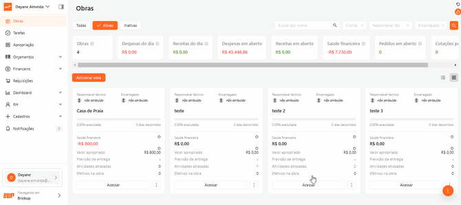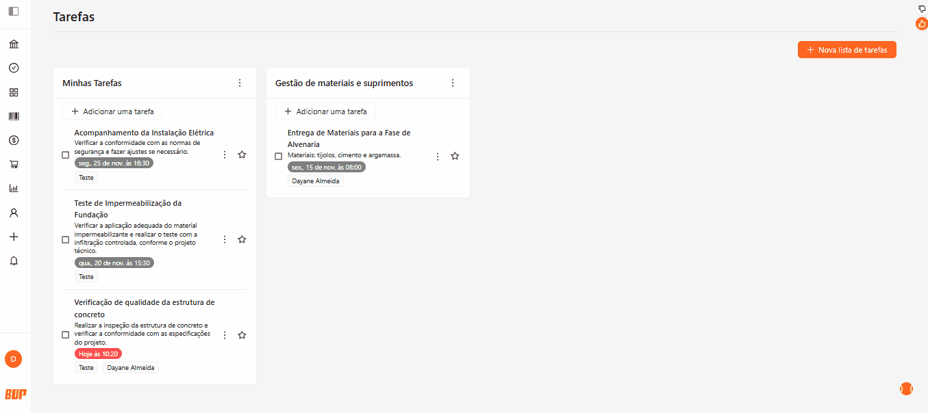 Centralize: registre todas as atividades da obra ou da empresa no módulo de tarefas, evitando controles paralelos;