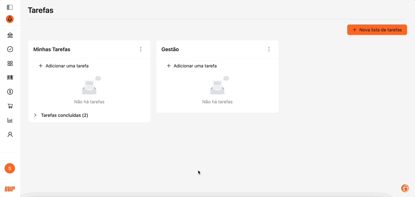 Para acessar, utilize o menu lateral da sua organização e selecione a opção Tarefas.
