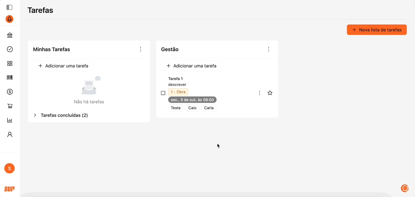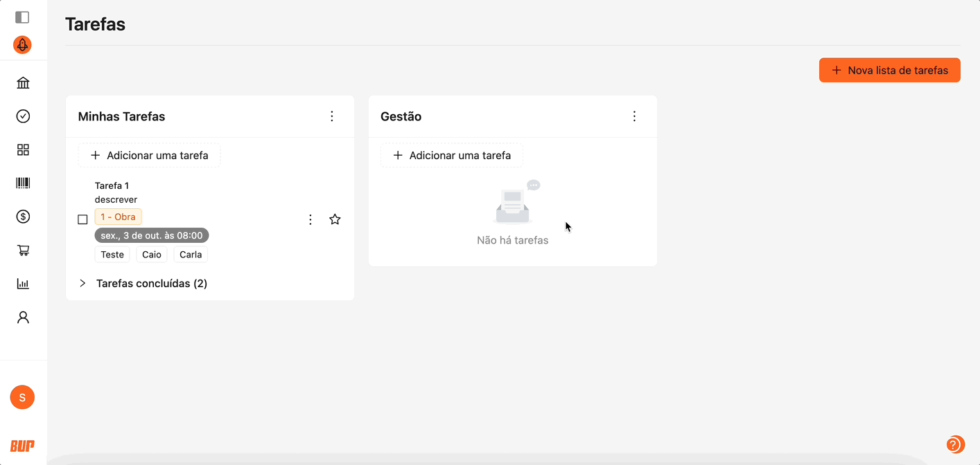 A funcionalidade de Tarefas foi desenvolvida para apoiar a organização das atividades da sua empresa, permitindo: